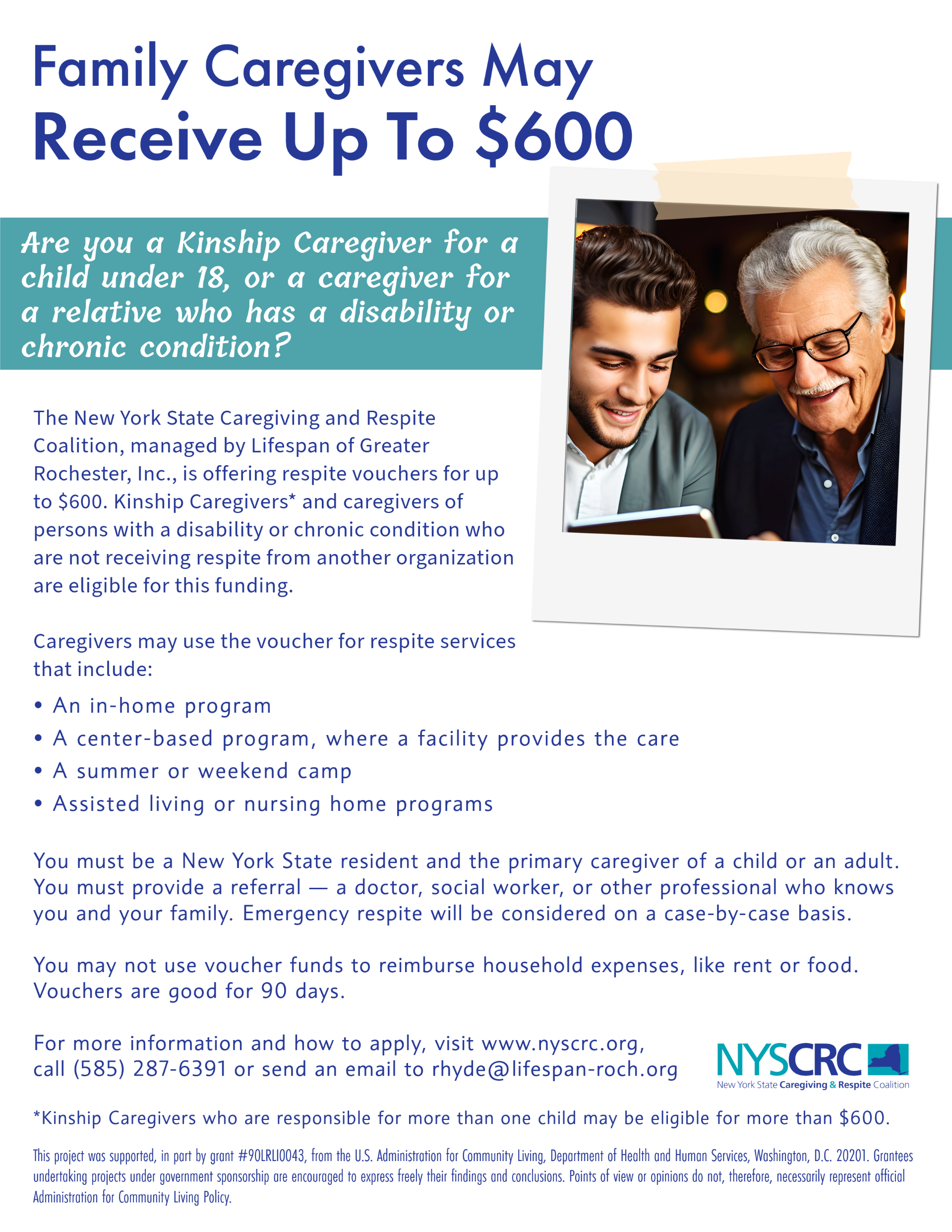 Family caregivers are sons, daughters, grandparents, neighbors, friends, co-workers. They are young people caring for loved ones with serious diagnoses, and they are aunts and uncles caring for children who have experienced trauma and loss. In my job, as coordinator of a respite program in New York State, I talk on the phone with family caregivers every day. A few seem to manage their various responsibilities without a sweat, while many are tired and overwhelmed. Our program, which is funded through the Administration for Community Living (Lifespan Respite Care Program), gives caregivers a little bit of money ($600) to hire someone to give them respite, a break. One caregiver hired someone to stay with his wife so he could go fishing; another hired a friend to stay with her mom so she could celebrate her 50th wedding anniversary. She wrote on the follow-up survey: “As a caregiver, you’re so focused on the things you have do — doctor visits, picking up medications, setting up the daily medications, feeding, showering, etc. that you really forget that you need to take some time out of the day for yourself.” Caregiving for a loved one can be very expensive, and in the grand scheme of things, $600 isn’t a lot of money. But it affords caregivers a break. And sometimes that’s all they need to keep going day after day. An article about our program can be found here: https://nymisojo.com/2024/04/ny-caregivers-need-time-for-themselves-one-program-offers-a-lifeline/